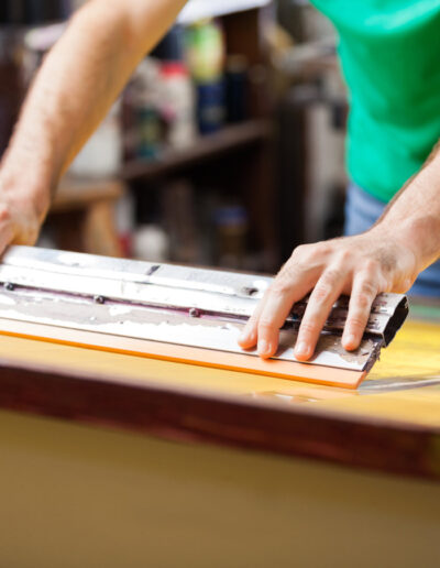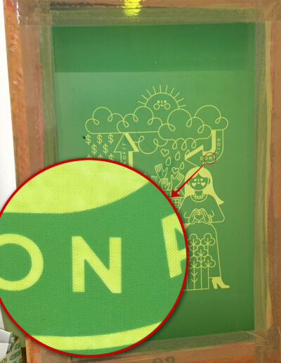 A nyomandó grafikai mintát előkészítjük. Grafikai szerkesztő szoftverrel beállítjuk a méretét, kijavítjuk a hibákat, majd a színekből filmeket nyomtatunk. A filmeket felhasználva UV megvilágítással, maszkolással alakítjuk ki a mintát speciális szöveten. Ezt a szitakeretet befogjuk a nyomógépbe és egy gumikés segítségével nyomjuk fel a festéket a szövetre. Annyi szita sablonra van szükség, ahány színű a grafika. Az alábbi képsoron egyszínes minta készítési folyamata látható.